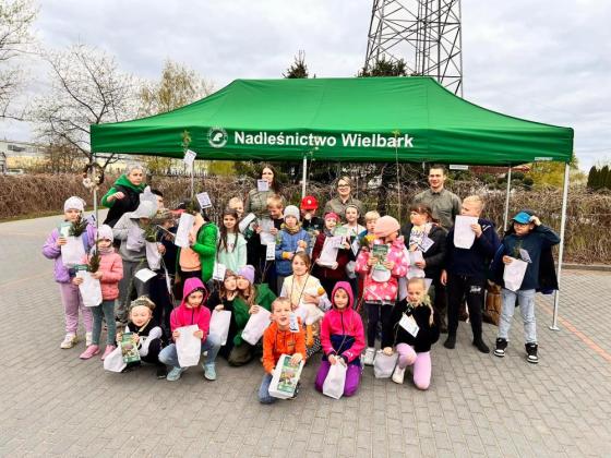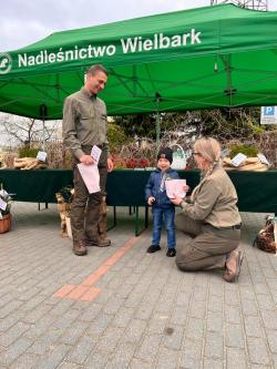 12 kwietnia przed każdym Nadleśnictwem w Polsce można było otrzymać darmowe sadzonki drzew i krzewów rodzimych gatunków. Nie inaczej było przed siedzibą Nadleśnictwa Wielbark. Na stoisku leśnicy przygotowali kilka gatunków sadzonek wraz z etykietą jak odpowiednio posadzić młode drzewko.