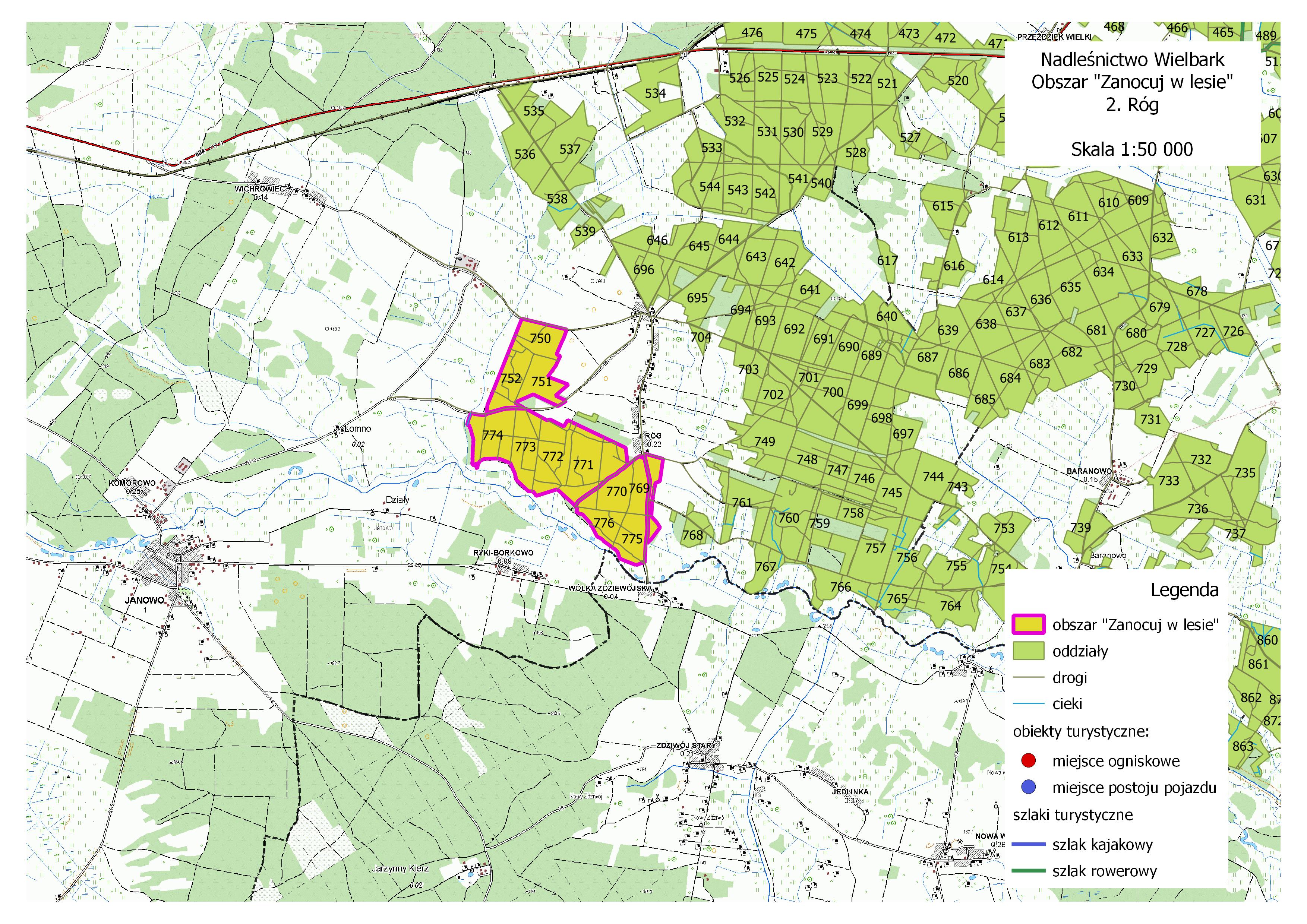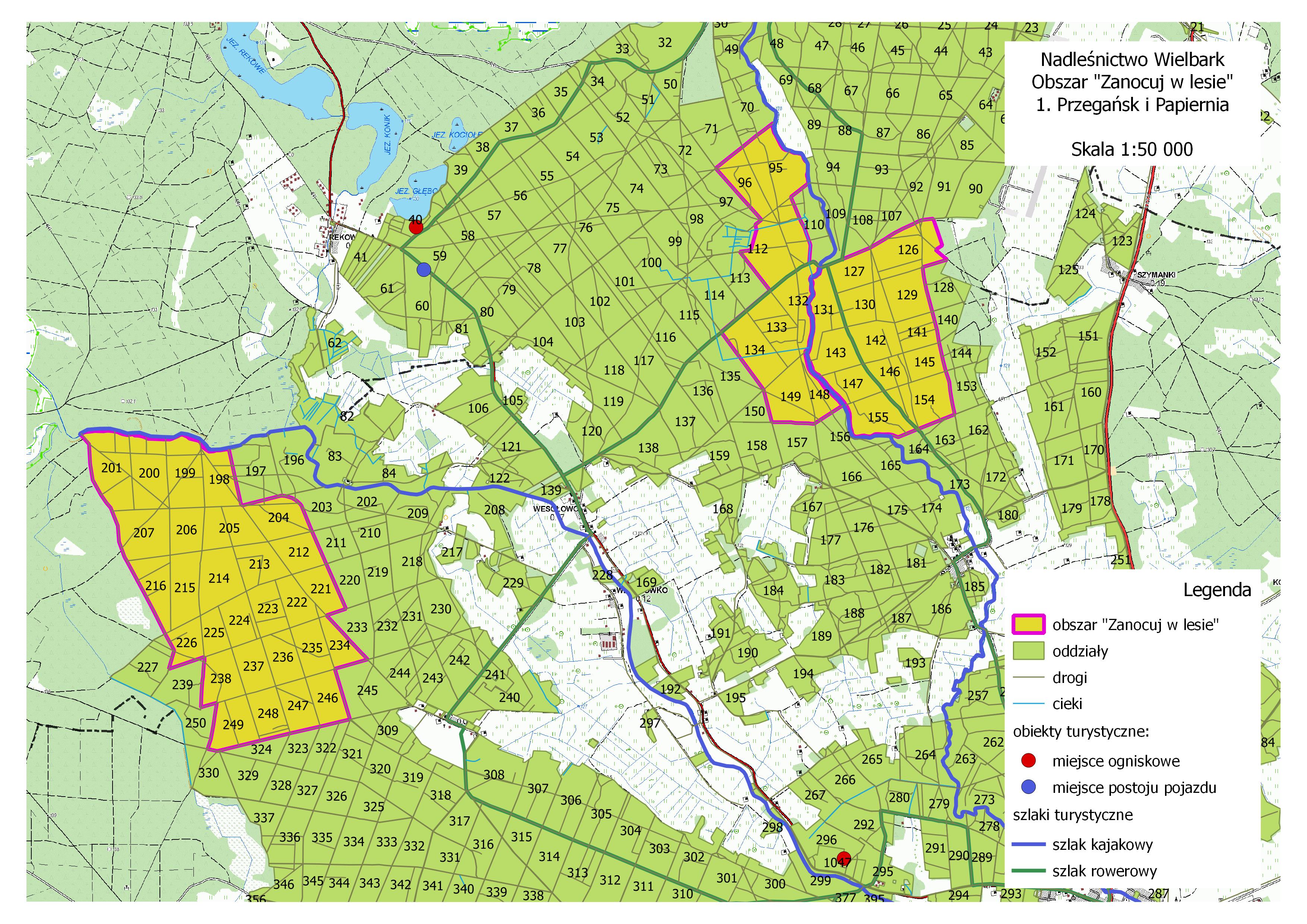 Nadleśnictwo Wielbark wprowadziło w ramach programu „Zanocuj w lesie” trzy obszary: Przegańsk, Papiernia i Róg.
