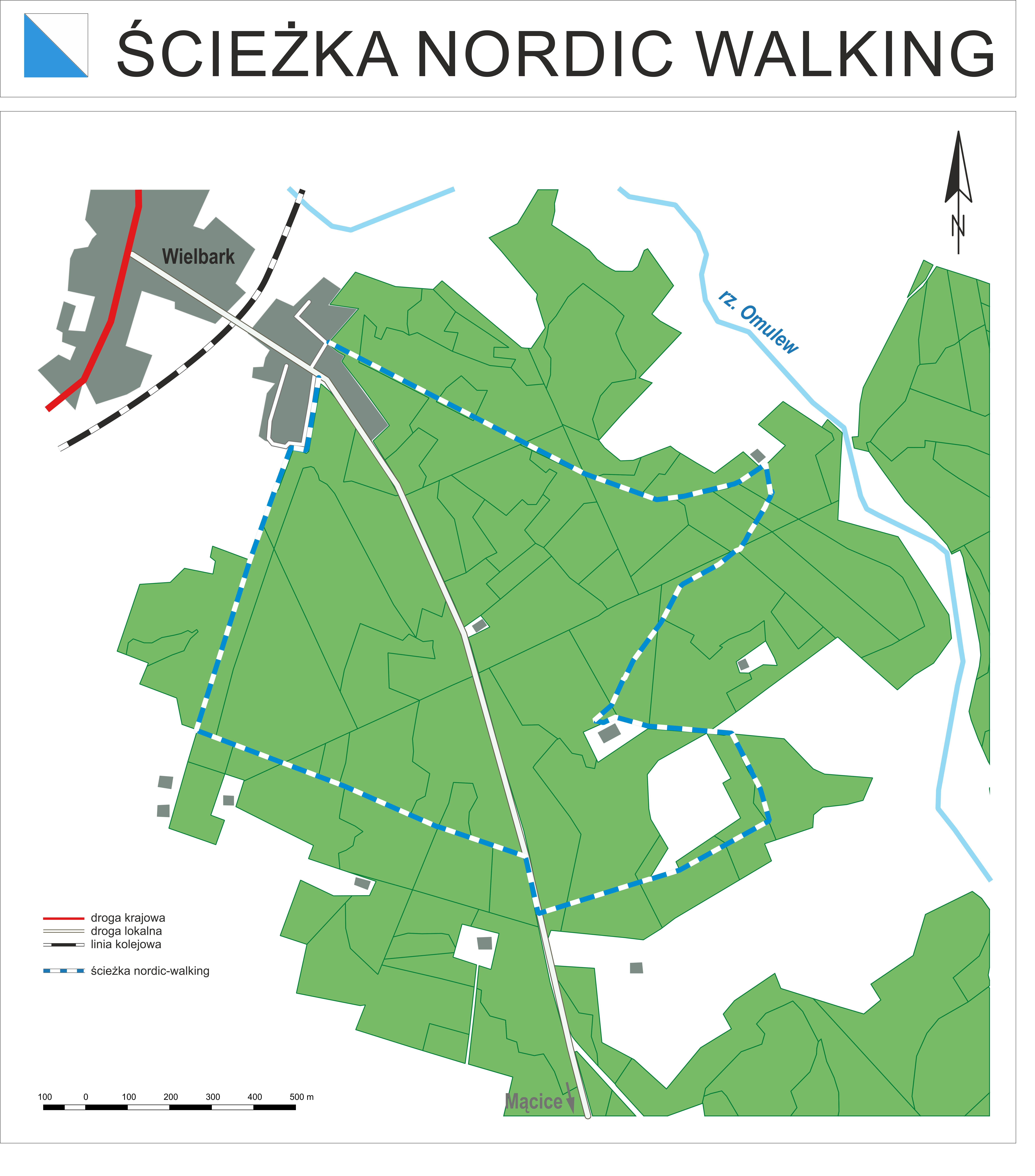 Trasa do nordic-walking, coraz bardziej popularnego zarówno wśród mieszkańców jak i wśród turystów, zaczyna się na południowym końcu miejscowości Wielbark, przy wyjeździe na Mącice. Pięciokilometrowa pętla prowadzi przez malownicze świetliste bory leśnictwa Trzcianka.