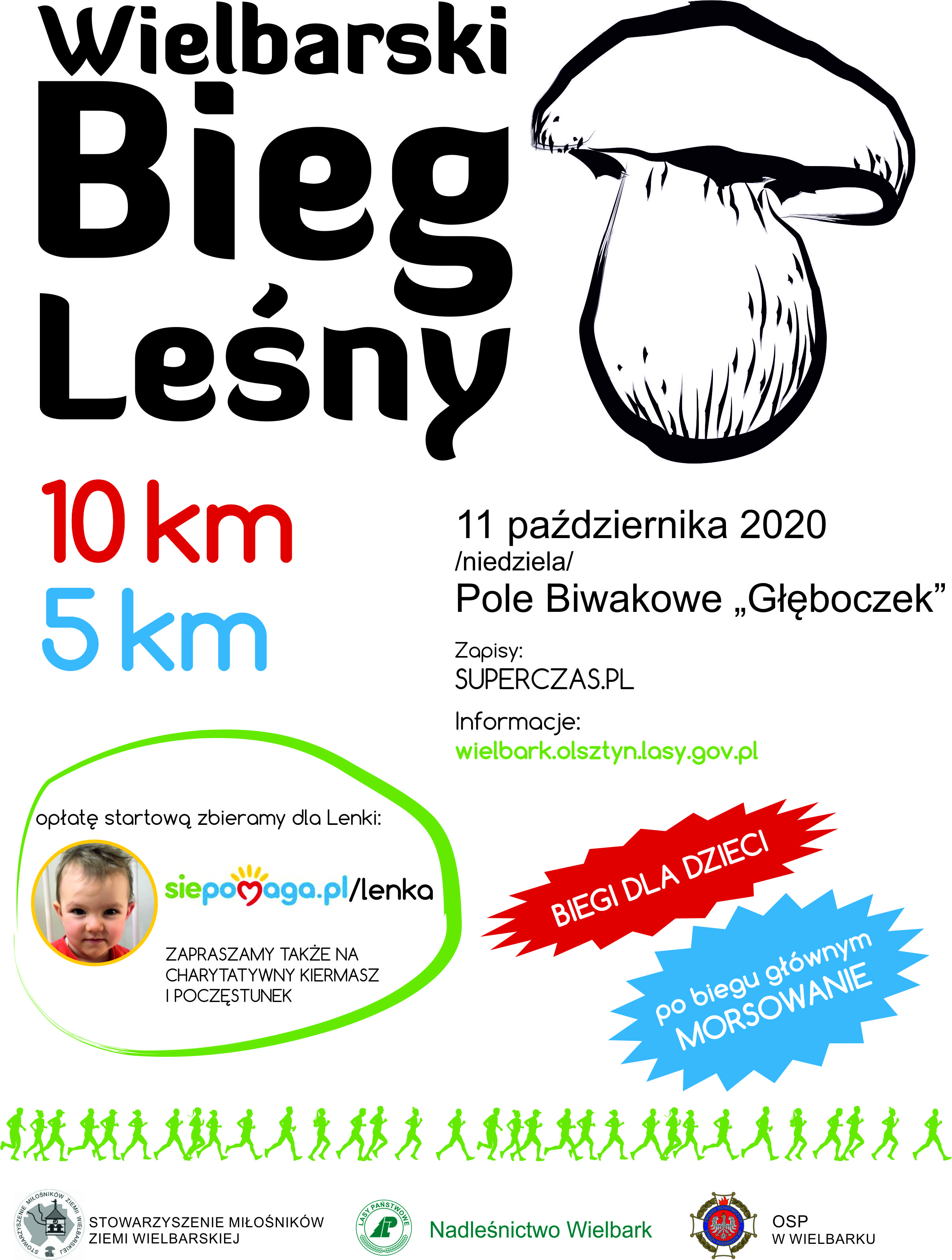 Wszystkich, którzy biegając chcieliby wspomóc walkę o zdrowie małej Lenki, zapraszamy 11 października 2020 na WIELBARSKI BIEG LEŚNY!
